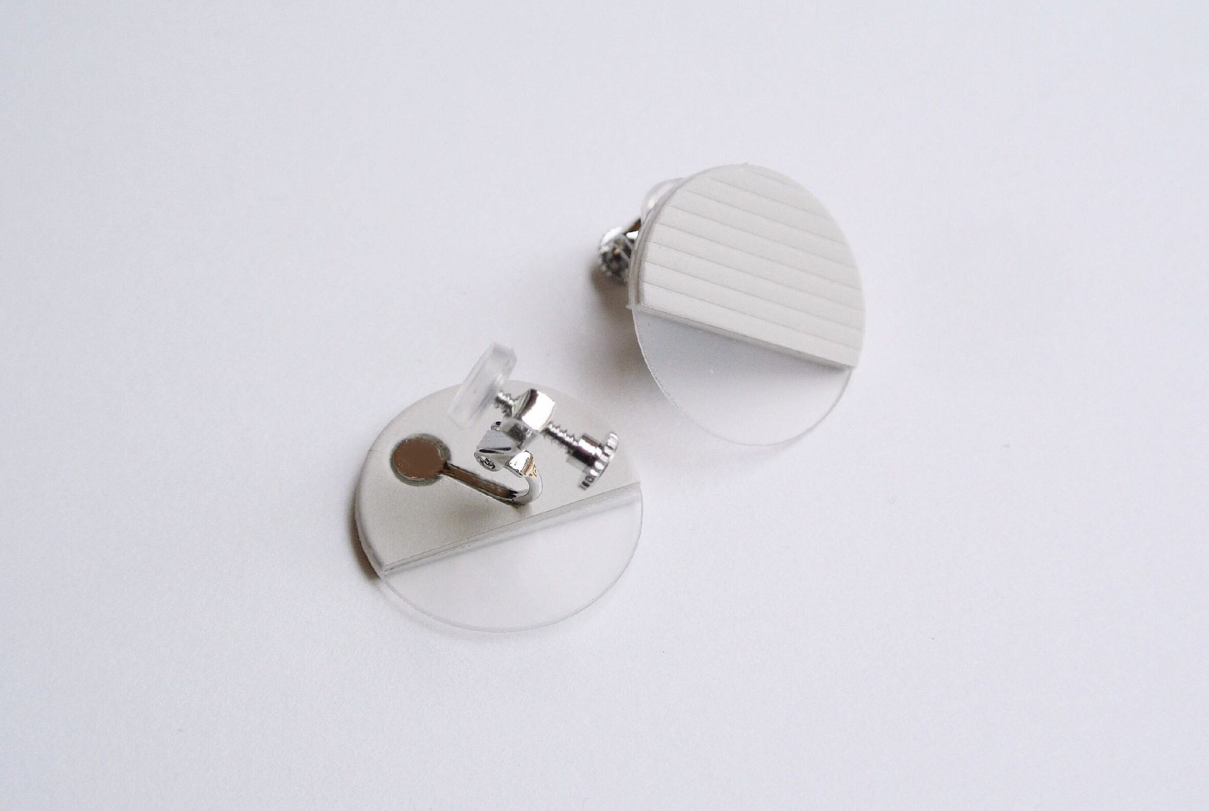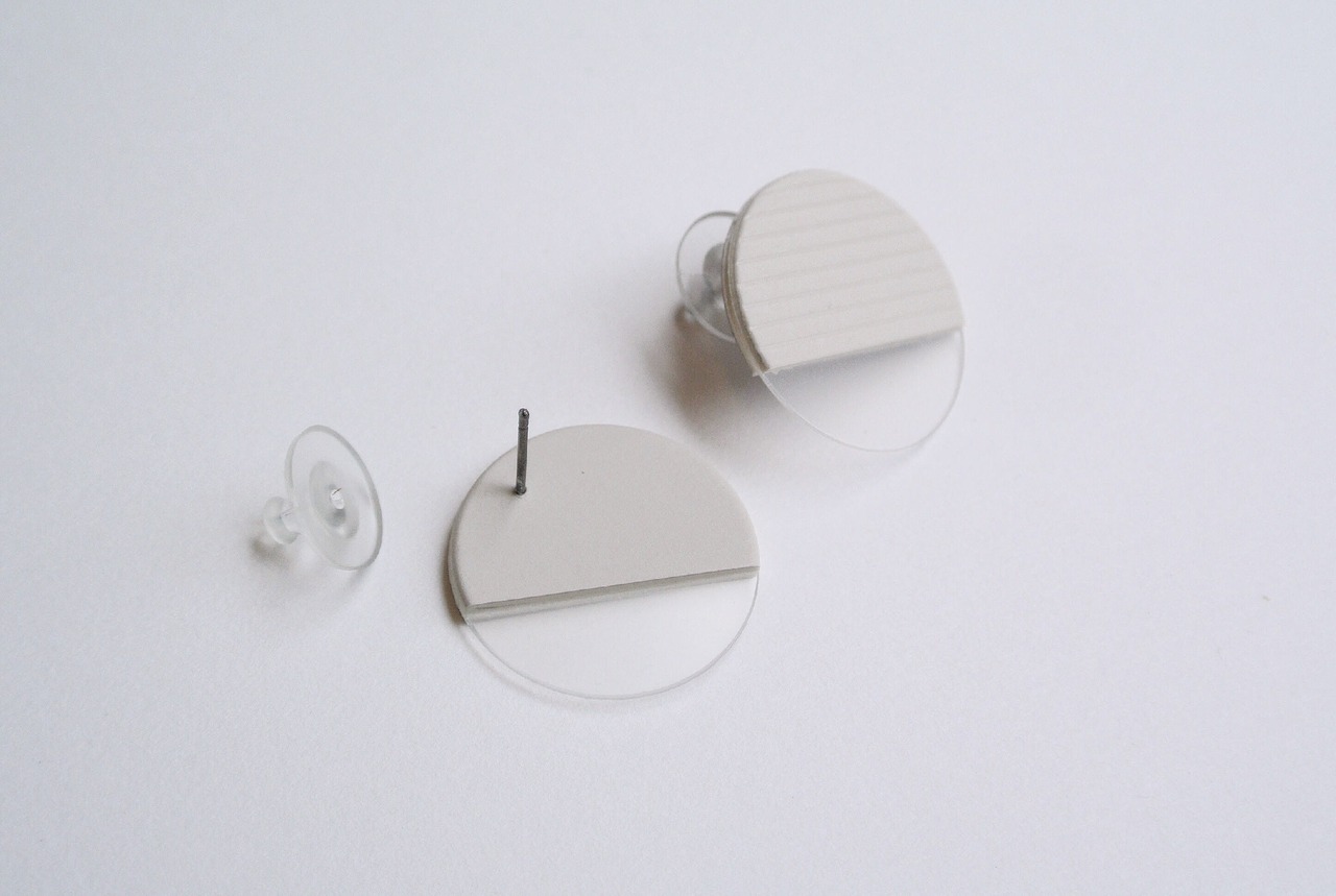 マットでしっとりした独特な艶感と、淡い色味が特徴のファインペーパーに、穏やかな光沢感のある透明箔を施したデザインのピアスとイヤリング。